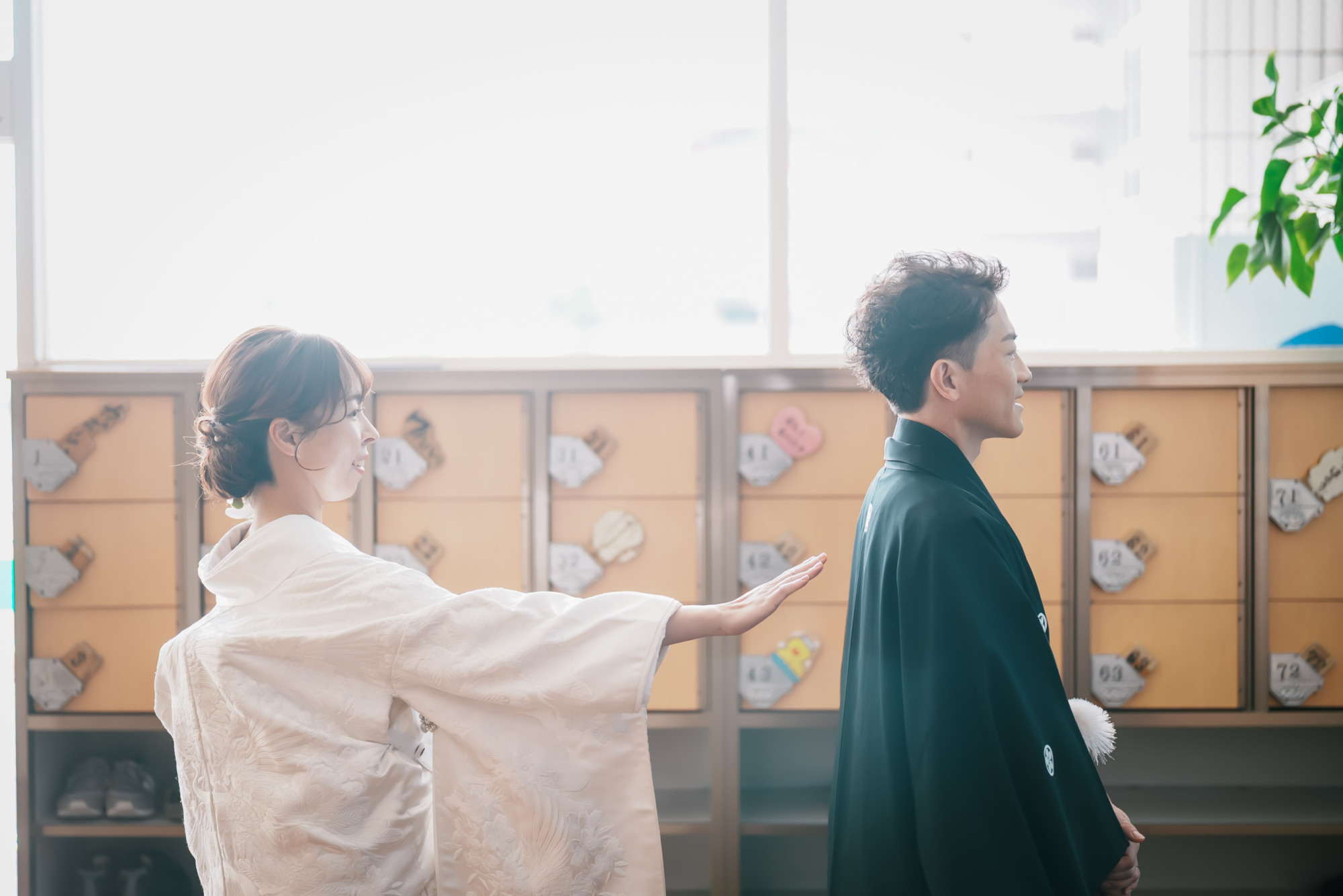 下駄箱の「81」と「1」の札と一緒に撮影する、さりげないけれど意味のある一枚に。
